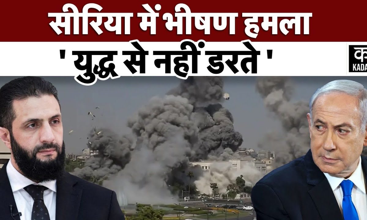Israel Attack Syrian : इजरायल के हमले में धुआं धुआं सीरिया, क्या झड़प रुकेगी? | Druze | Netanyahu There is panic in Syria after the Israeli attacks. Israel directly attacked the Syrian army headquarters and near the Presidential Palace. The Israeli army claims that these were the same locations from where attacks were being carried out on the Druze community in the Sweida area. The Israeli attack was captured live on a Syrian TV show when the blast occurred right behind the anchor.सीरिया में इजरायली हमलों के बाद हड़कंप है. इजरायल ने सीधे-सीधे सीरियाई सेना के मुख्यालय और राष्ट्रपति भवन के पास हमला कर दिया. इजरायली सेना का दावा है कि ये वही ठिकाने थे जहां से स्वैदा इलाके में ड्रूज़ समुदाय पर हमले किए जा रहे थे. इजरायली हमला सीरियाई टीवी शो में लाइव कैद हुआ जब एंकर के ठीक पीछे धमाका हुआ. देखिये लोकल खबरें, लोकल अंदाज़ में सिर्फ KADAK NEWS Channel पर
