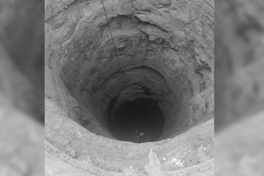 गांव की बावड़ी में तले पर पानी है, जिसे निकालने के लिए बाल्टी के साथ खींचनेवाले को भी भीतर उतरना होता है