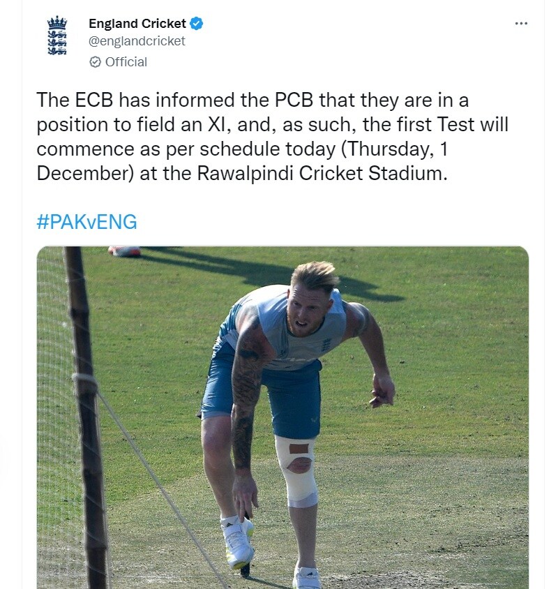 Pakistan vs England के बीच रावलपिंडी में 1 दिसंबर यानी आज से पहला टेस्ट खेला जाना है. हालांकि, एक दिन पहले कप्तान बेन स्टोक्स समेत इंग्लैंड के 14 खिलाड़ियों के बीमार होने की खबर आई थी. इसके बाद पहले टेस्ट के टलने की आशंका जताई जा रही थी. यह टेस्ट तय समय और शेड्यूल पर शुरू होगा या नहीं? इसे लेकर बड़ा अपडेट आया है.