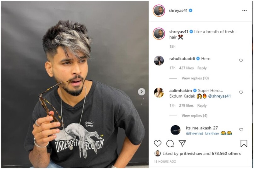 <br />श्रेयस अय्यर के नए लुक को फैंस काफी पसंद कर रहे हैं. एक फैंस ने उनके हेयरस्टाइल को एकदम कड़क बताया है. इंस्टाग्राम पर अय्यर को 50 लाख से ज्यादा लोग फॉलो करते हैं. (फोटो साभार-shreyas41)